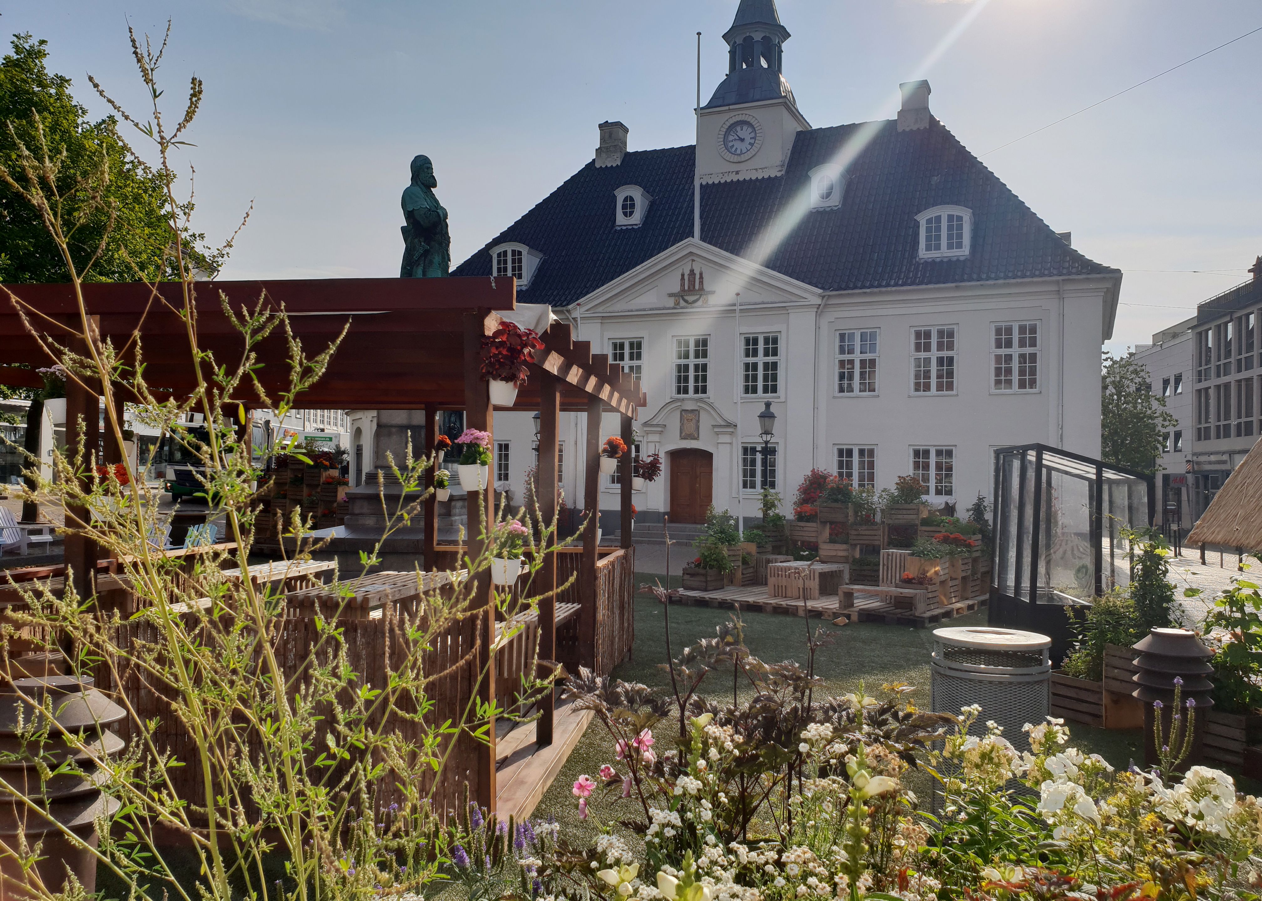 Efter fornyelse fremstod den lille lommepark som en mindre oase på vej ind mod Randers midtby.